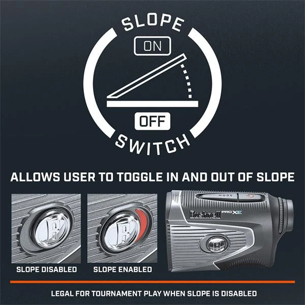 TOURNAMENT LEGAL WITH SLOPE-SWITCH: Slope-Switch technology lets the golfer easily toggle in and out of our patented Slope function. This allows the golfer to conveniently utilize Slope to get compensated distances around the course when they want it and have a USGA conforming device that is legal for tournament play when they need it. (Complies with USGA rule 14-3/0.5 when Slope-Switch in “off” position.)