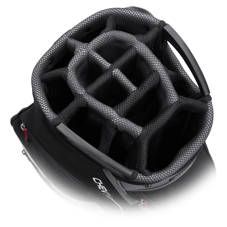 One of the best selling lightweight trolley bags from Callaway. The new Chev 14+ Cart Bag is designed to fill all requirements the cart bag player needs with lightweight design. The Chev 14+ Cart bag offers exceptional club organisation while the ‘E’ trolley friendly base allows the bag to fit perfectly on either push/pull or electric trolleys. The bag features 8 pockets which include a range of water resistant valuables pockets, cooler drinks pocket, full length pockets & more.