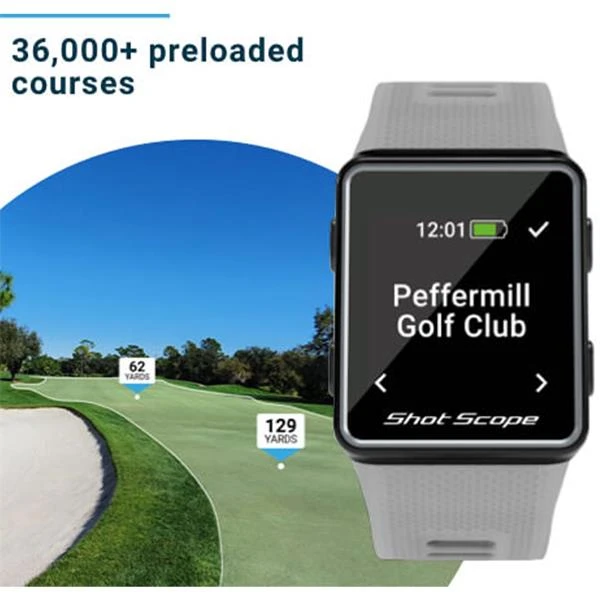 Shot Scope G3 is a highly accurate GPS watch with distances to greens available in yards or meters. G3 provides GPS distances to the front and back of hazards, allowing a strategy to be formed for the hole. Shot Scope G3 comes preloaded with over 36,000 courses worldwide and free firmware updates. A daylight readable colour screen and easy to navigate buttons, make G3 easy to use while golfing. Shot Scope G3 is one of the lightest GPS watches on the market.