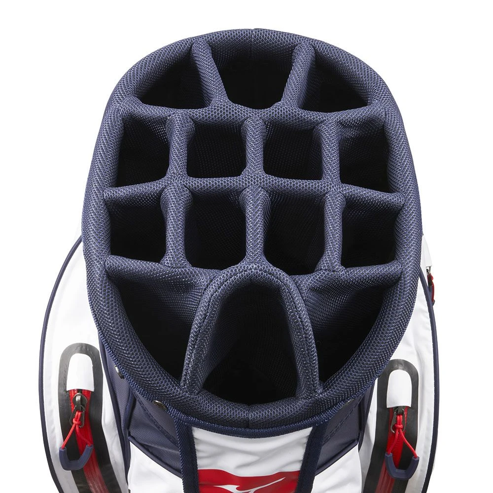 Mizuno BR-DRI Waterproof Golf Cart Bag is a totally waterproof cart bag with seamless construction to protect your possessions in the worst golfing weather. 7 protected pockets and a 1-year waterproof guarantee.